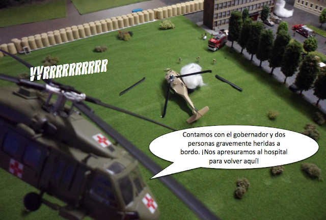 Hay varios heridos graves... Los dos helicópteros de la unidad Mac TENROC despegan...